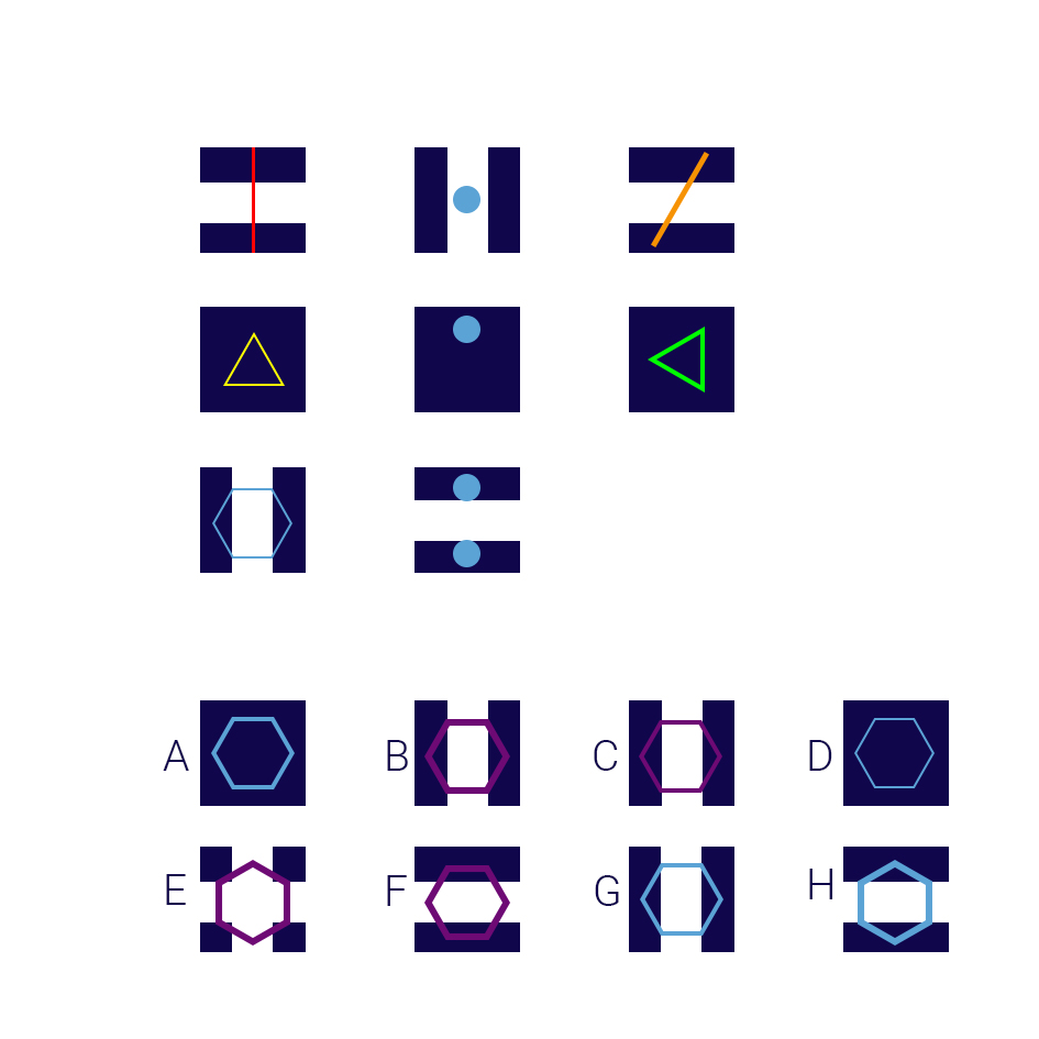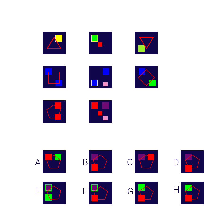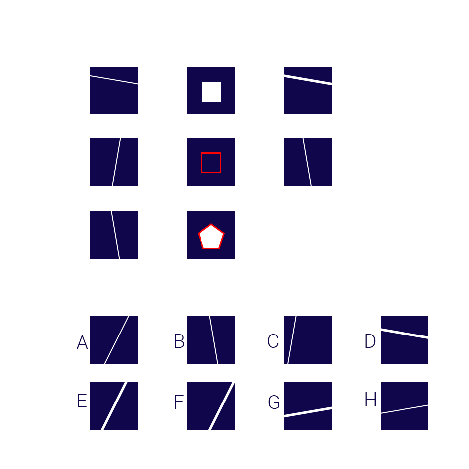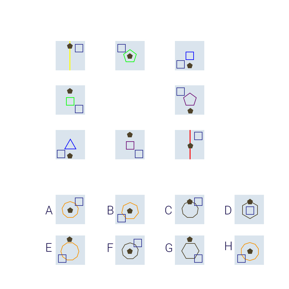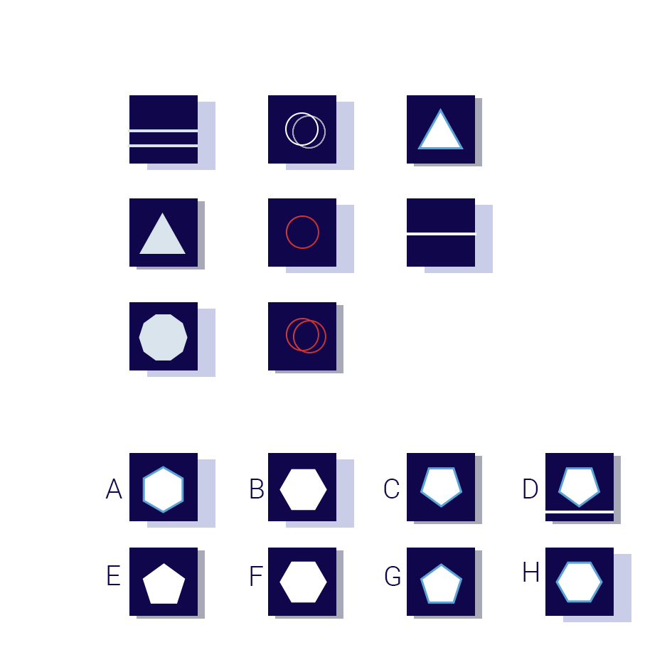 The Spatial Test SOFIA contains 20 items designed to measure spatial reasoning, pattern recognition, and the ability to mentally manipulate geometric transformations.There is no time limit, but test-takers are encouraged to spend between 1 and 2 hours completing all items in a calm and focused environment. Accuracy and reasoning clarity are more important than speed.